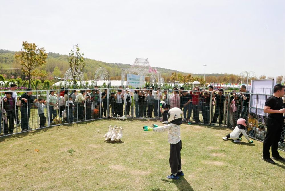 襄阳市襄城区卧龙镇朝阳村“卧龙月季花海”举办的春季趣味活动。新华社发