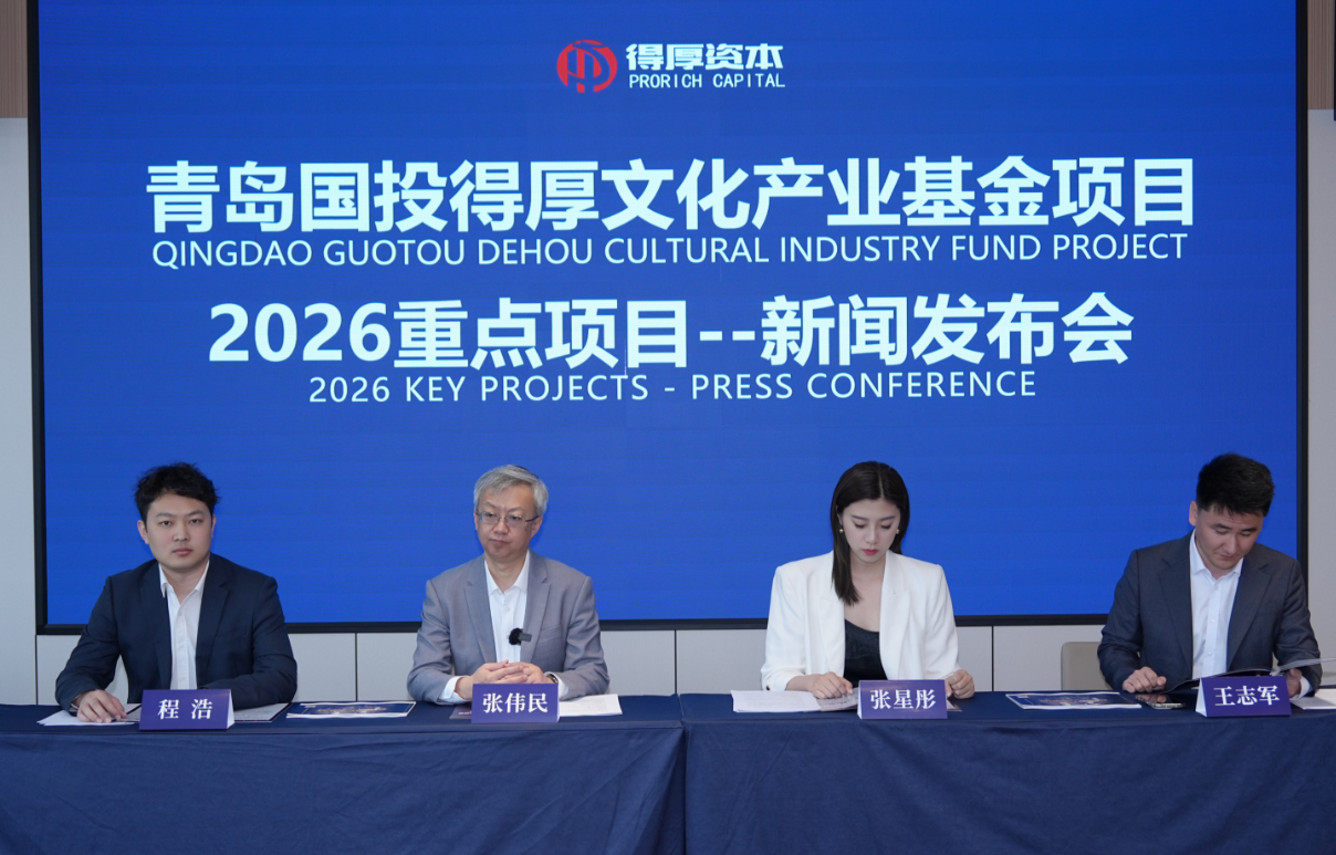 2026年4月8日,青岛国投得厚文化产业基金2026重点项目分享新闻发布会在深圳举行。本次发布会以“凝聚资本力量 扎实项目落地”为主题,汇聚行业资深人士、优质企业代表、产业合作伙伴,全面发布基金核心项目进展、2026年全产业链布局规划,重磅推出“得厚新星计划”,并完成多项战略合作签约,以国有资本赋能文化产业升级,共绘文化金融融合发展新蓝图。