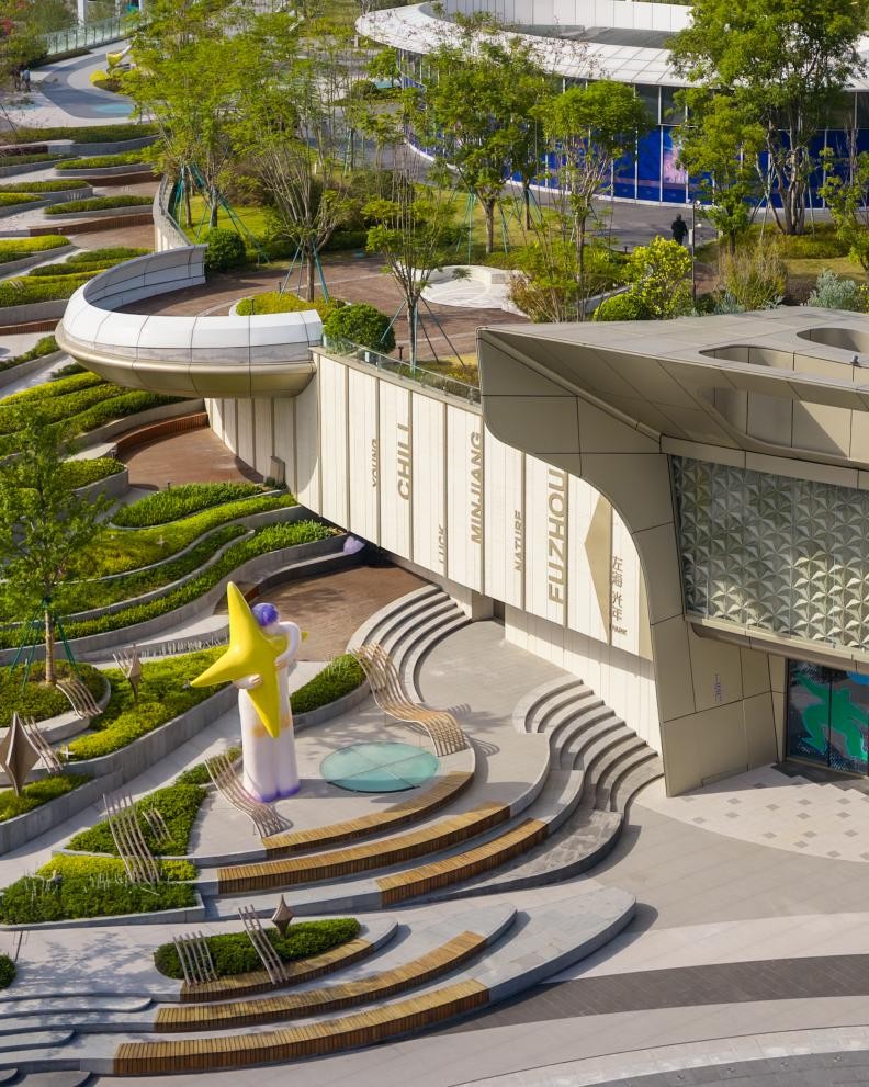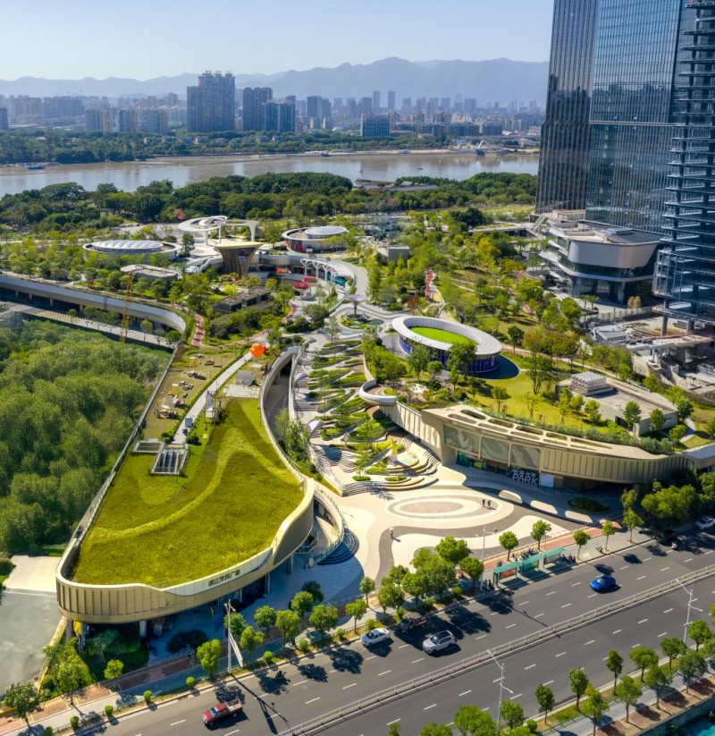 项目位于福州市台江区闽江北CBD内,总建筑面积11.5万方,是集城市公园、购物中心为一体的TOD项目。通过“在屋顶上散步、在公园下购物”的设计理念,重塑城市公园与地下商业生态之间的关系,将商业街区与闽江地标公园相结合,突破传统盒子商业的束缚,打造福州城市新名片。