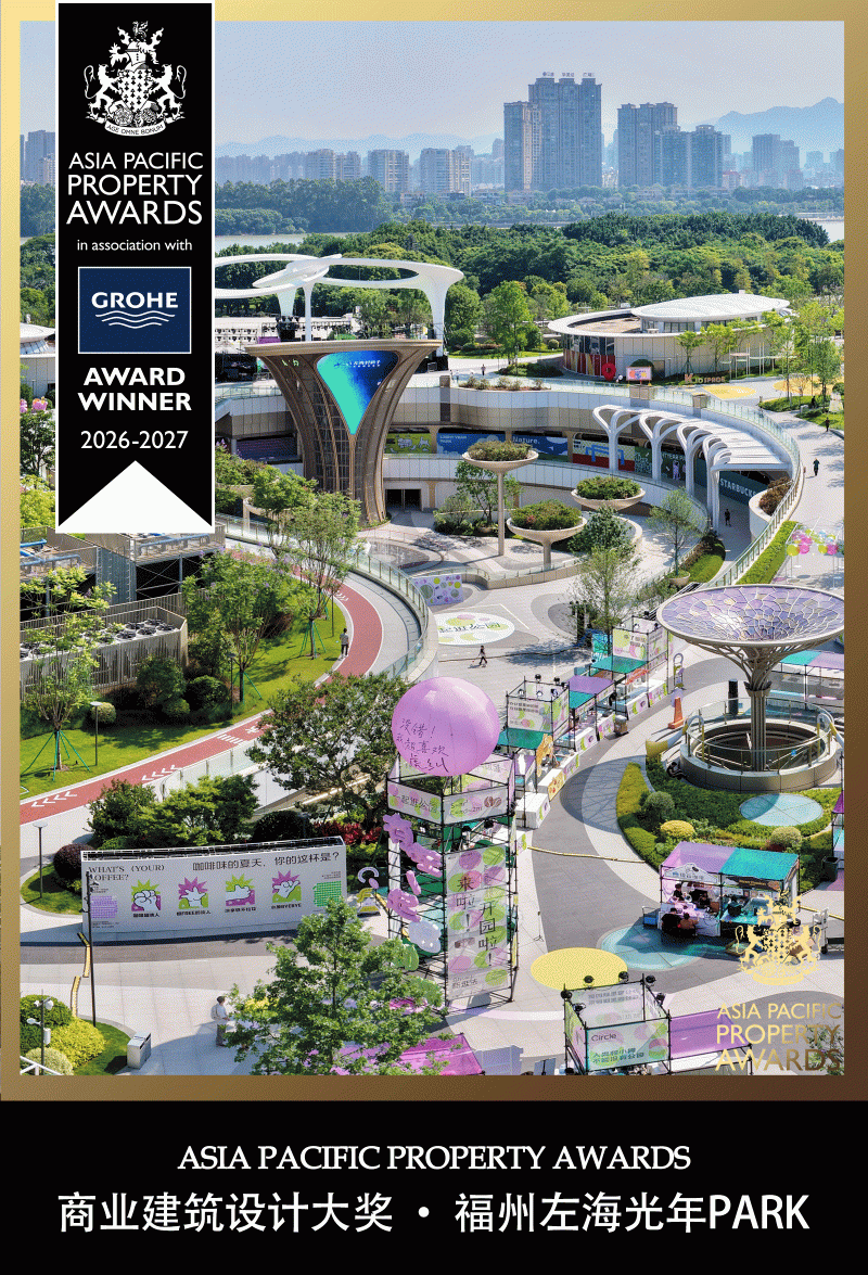 近期,2026–2027年度亚太地产大奖获奖名单正式公布,集团「福州左海光年Park」项目在全球参赛作品中脱颖而出,荣获商业建筑设计大奖,获得国际权威认可。项目将与亚洲各国优胜作品共同竞逐“五星大奖”及“亚太区最佳大奖”,最终结果将于5月在泰国曼谷举行的颁奖典礼上公布。