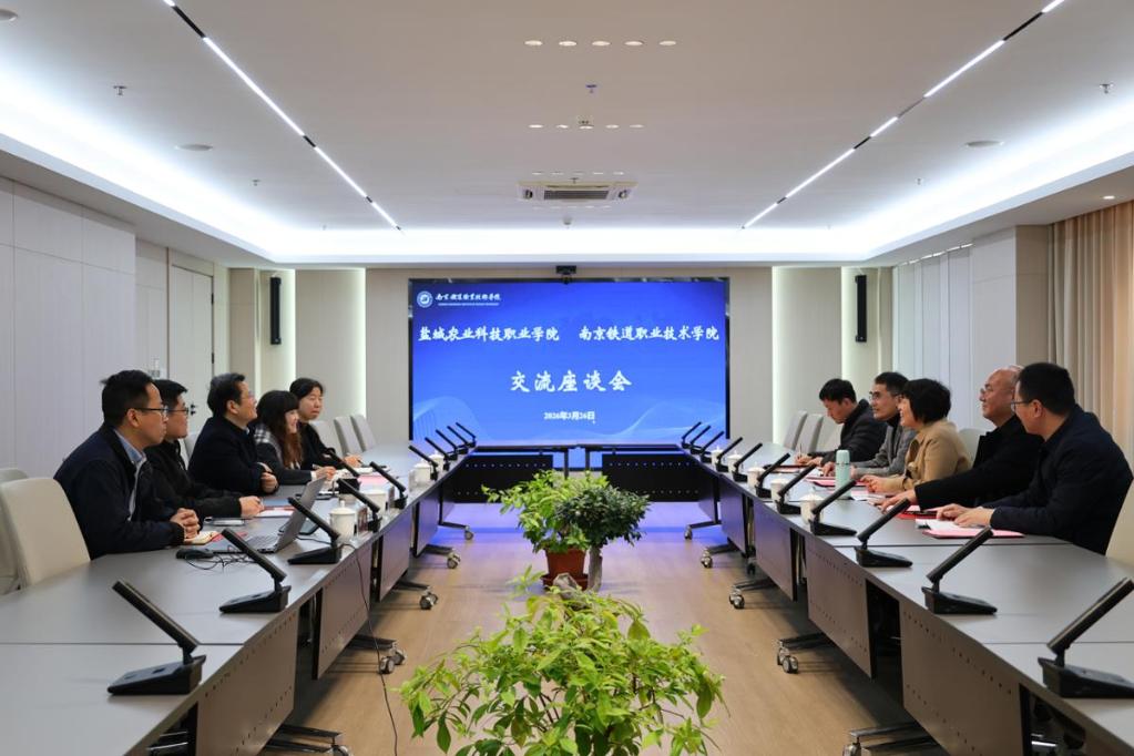 3月26日上午,盐城农业科技职业学院副校长束秀玉一行来到南京铁道职业技术学院,双方围绕“一站式”学生社区建设等议题展开深入探讨,南京铁道职业技术学院副校长曹国红参加并主持座谈会。