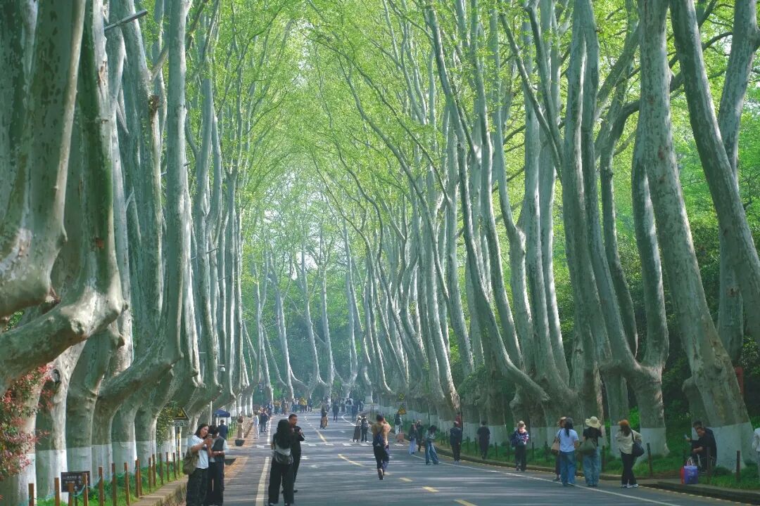 此时此刻,从陵园路开始,新叶已经织成穹顶,钟山的嫩绿色一路延伸,梧桐大道▶️中山陵▶️音乐台▶️流徽榭▶️灵谷景区,一路春和景明,树影柔和,成为春日南京最值得奔赴的生态文旅目的地。