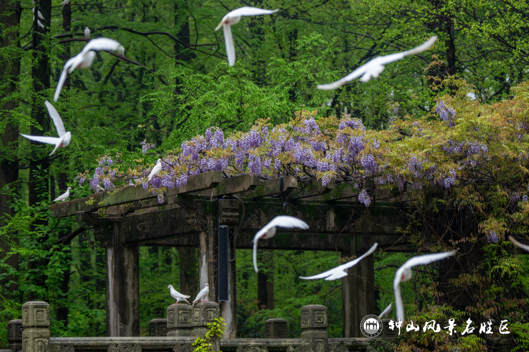 春深处,中山陵音乐台早已被绿意环绕,白鸽自由起落。春日到钟山,就别错过音乐台紫藤花下的音乐时光。
