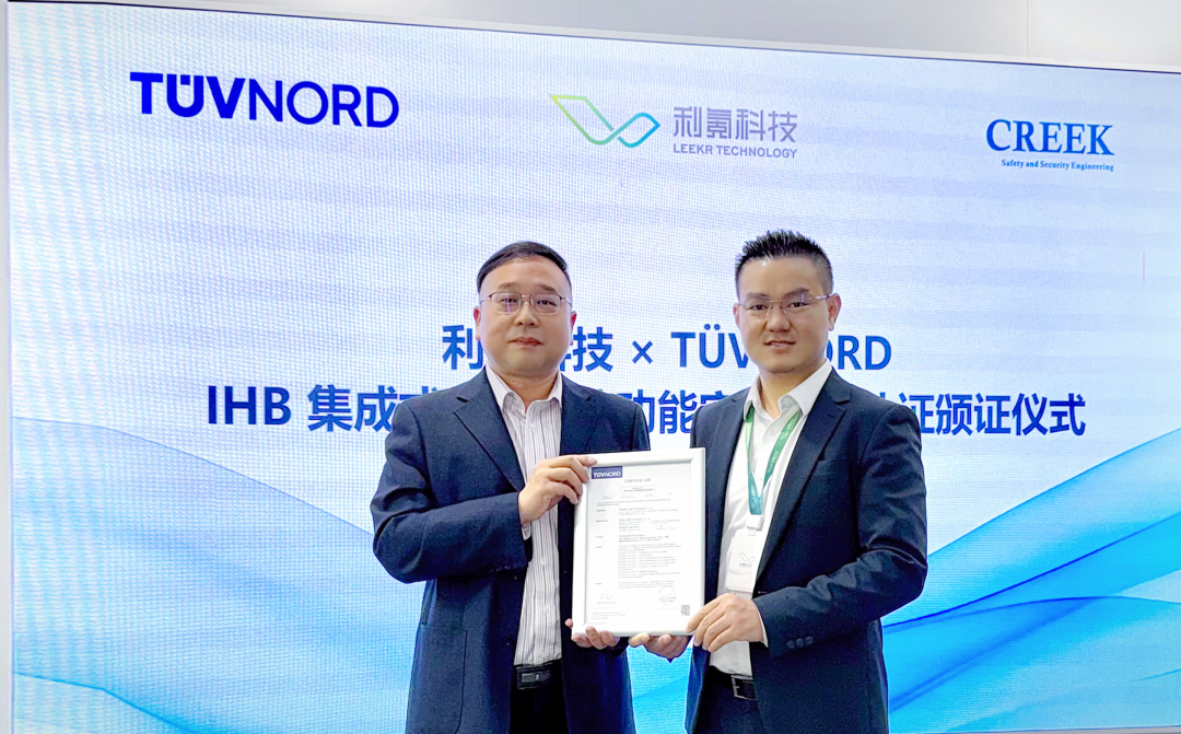 4月9日,利氪科技自主研发的IHB-LK集成式智能制动系统正式通过TÜV NORD(又称“TÜV北德”)基于ISO 26262:2018开展的全面功能安全评估,荣获道路车辆功能安全最高等级ASIL-D产品认证,北德中国区功能安全总监郑威、CREEK云氪总经理康建芳、利氪科技董事长惠志峰出席颁证仪式。