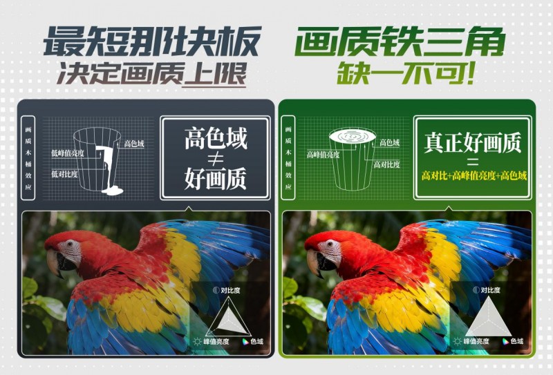 2、高色域:色彩是否丰富真实就得看着点,T7M Ultra通过超级量子点以及拥有晶粹高色阻的超级蝶翼星曜屏这一王炸组合,前者确保发出三原色的纯净度,后者进一步过滤杂光,双重保障下实现了100% BT.2020全局高色域,不仅单色好看,多色复杂画面也不串色、不偏色,色彩纯正不翻车,同价位几乎没对手;
