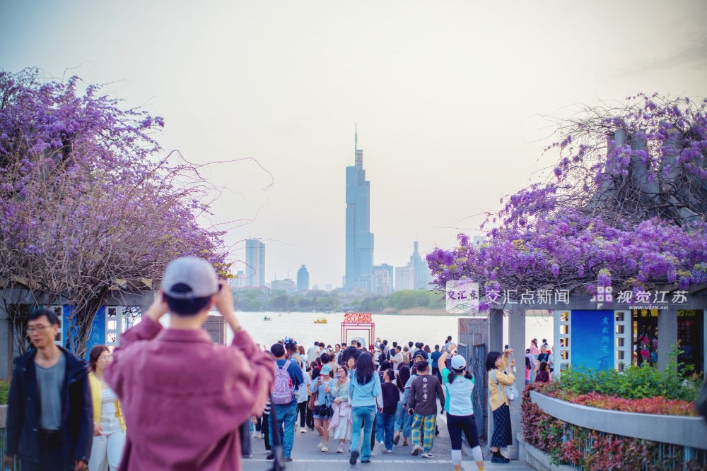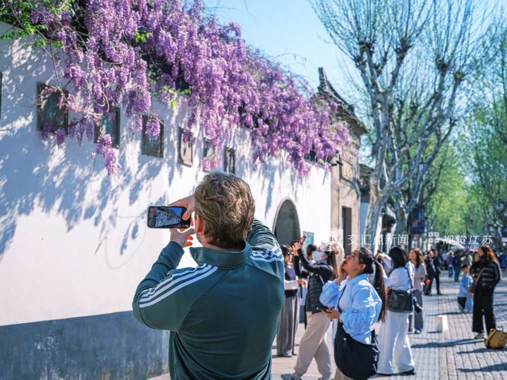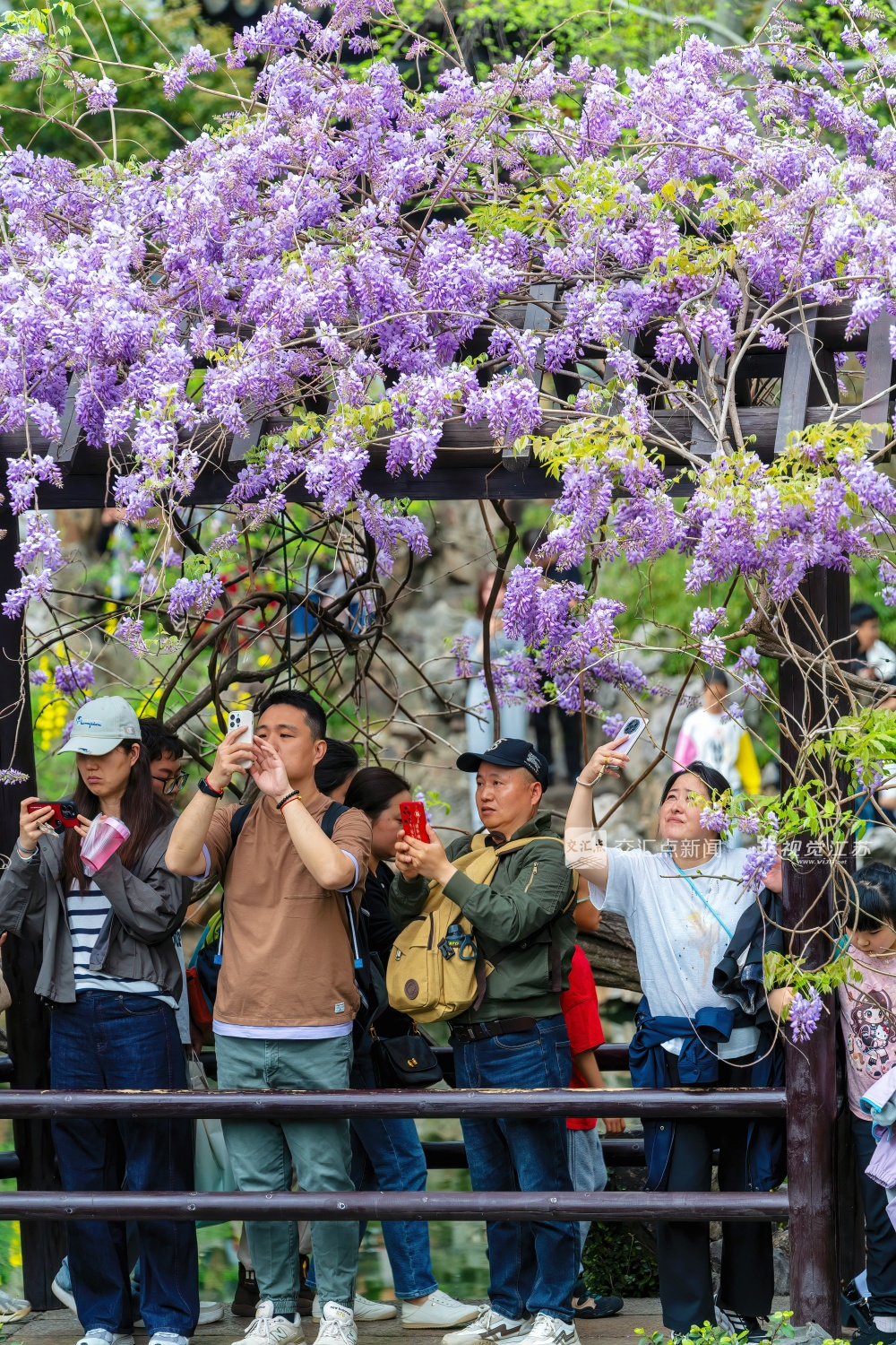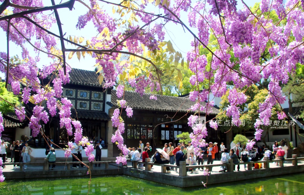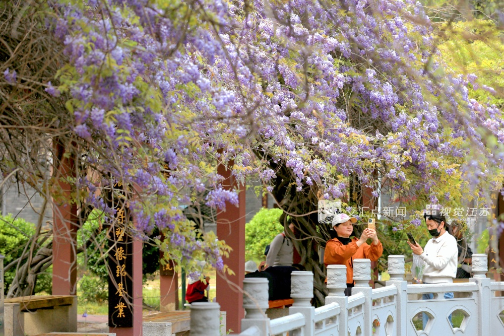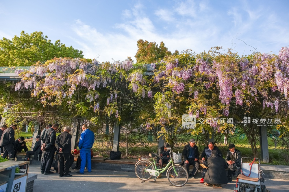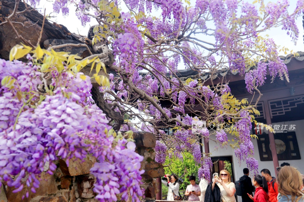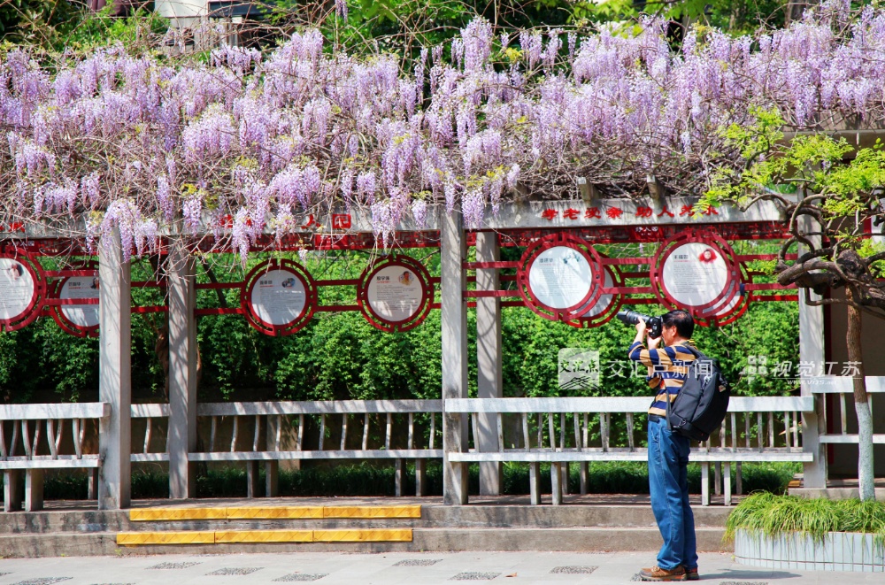 苏州拙政园门口的百年文藤、句容的百米紫藤长廊、宿迁的古园花架……花开如瀑,浅紫与深紫层层晕染,一串串花穗垂悬,随风摇曳。一起走出家门,去身边的园林、街巷、公园赴一场浪漫的紫色之约吧!