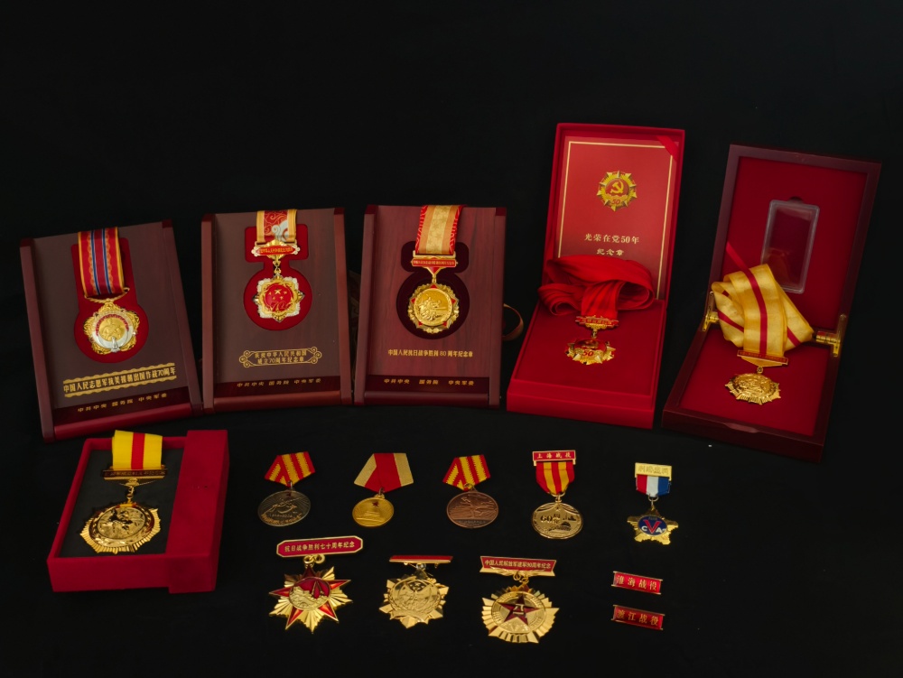 抗日战争胜利70周年纪念章、庆祝中华人民共和国成立70周年纪念章、中国人民志愿军抗美援朝出国作战70周年纪念章、中国人民抗日战争胜利80周年纪念章……周长根近年来也收到了不少纪念章,激动不已:“国家没有忘记我们!”
