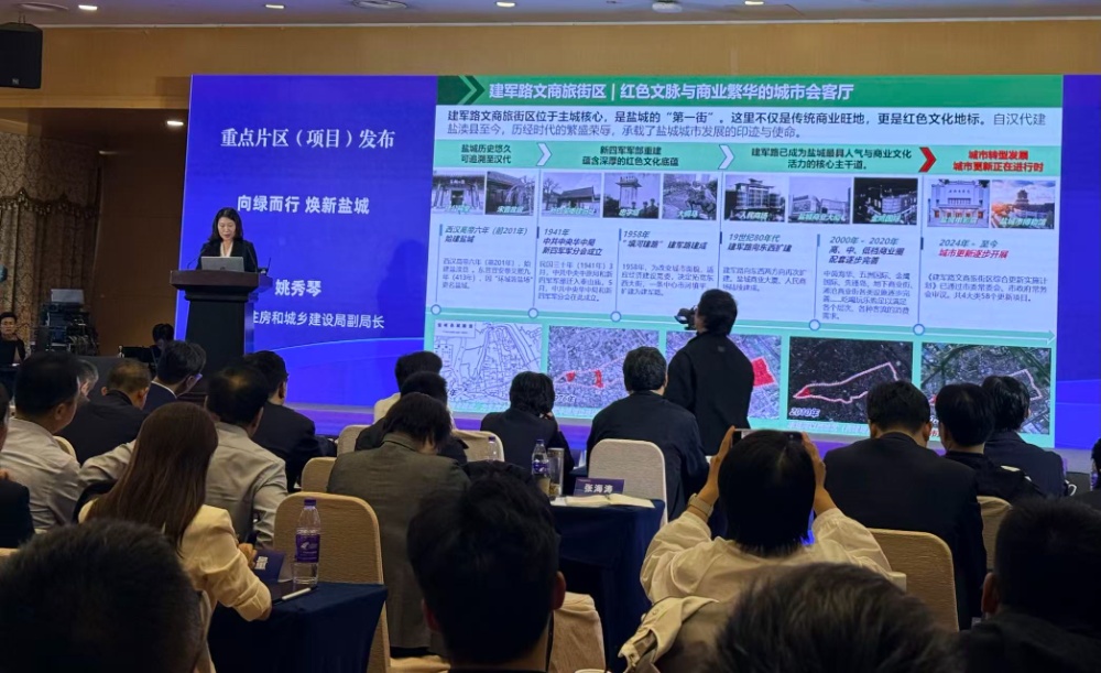 盐城市住房和城乡建设局副局长姚秀琴推介建军路文商旅街区等四个项目,希望更新后的街区兼顾保护与利用、转型与创新,实现现代都市时尚气息与老街巷烟火温情的自由切换。