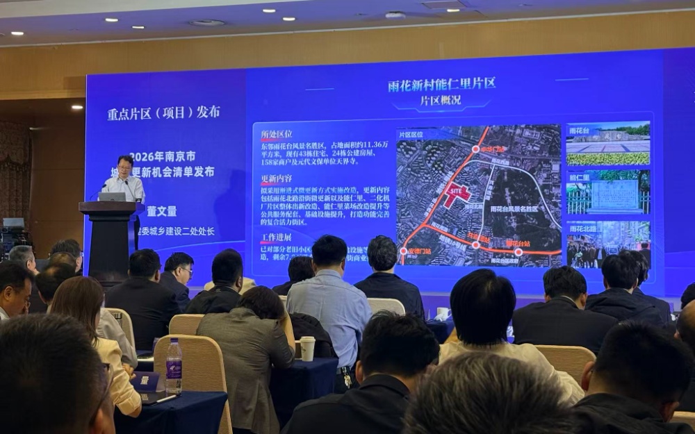 作为全国首批城市更新试点城市,南京以专项规划为引领,系统谋划、统筹推进重点片区更新,在存量空间中挖掘增量价值。论坛上,董文量重磅发布“2026年南京市城市更新机会清单”,环红山森林动物园片区等七个重点项目成为焦点。
