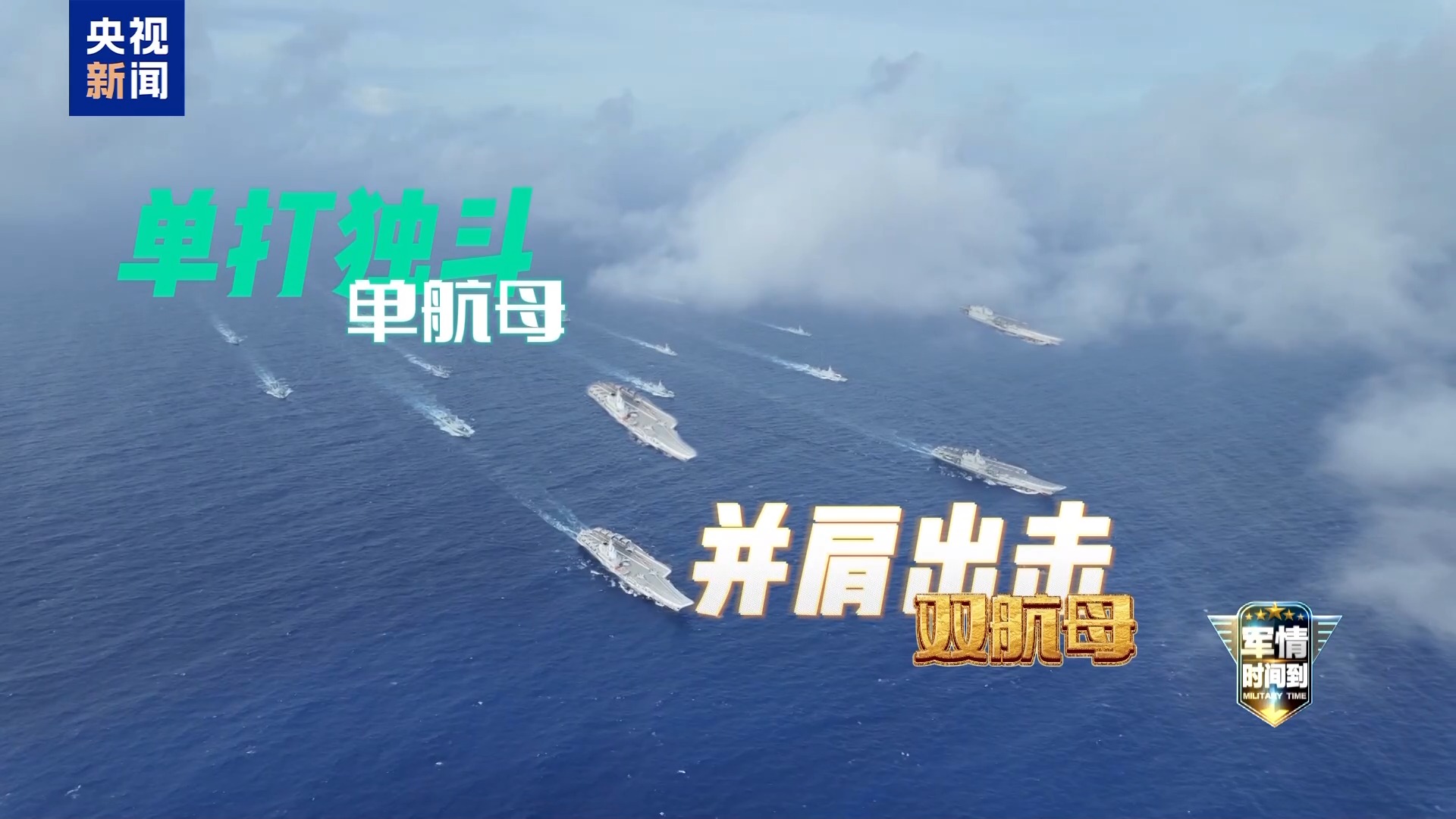 总台军事观察员 魏东旭:双航母编队的演练,人民海军是由易到难。当两艘航母全都实现了100%作战能力之后,我们还想最大程度把航母联合作战的战术和战法进行完善。两个航母编队把更强的力量集中到了一起,可以针对更为强大的目标,同时打出两支强有力的拳头,无论是远程的火力打击能力,还是防空反潜的能力,都会实现1+1>2的效果。