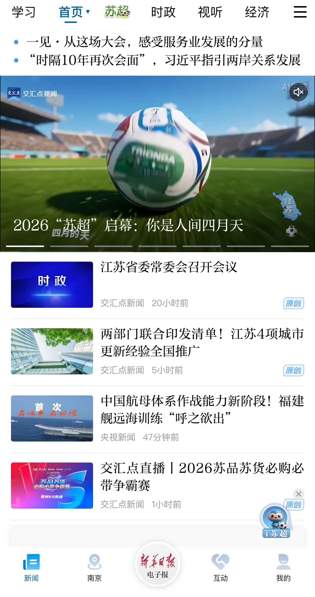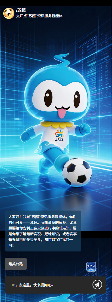 交汇点讯 焕新升级的交汇点新闻“i苏超”智能体今天正式上线。4月11日,2026江苏省足球城市联赛(“苏超”)首个比赛日,八支城市球队直接绿茵battle,激情四射!作为苏超赛事专属智能搭子,2.0版“i苏超”一手抓赛事资讯,一手揽城市文旅,不管你是看球党还是旅游党,有它在直接躺平式解锁快乐。