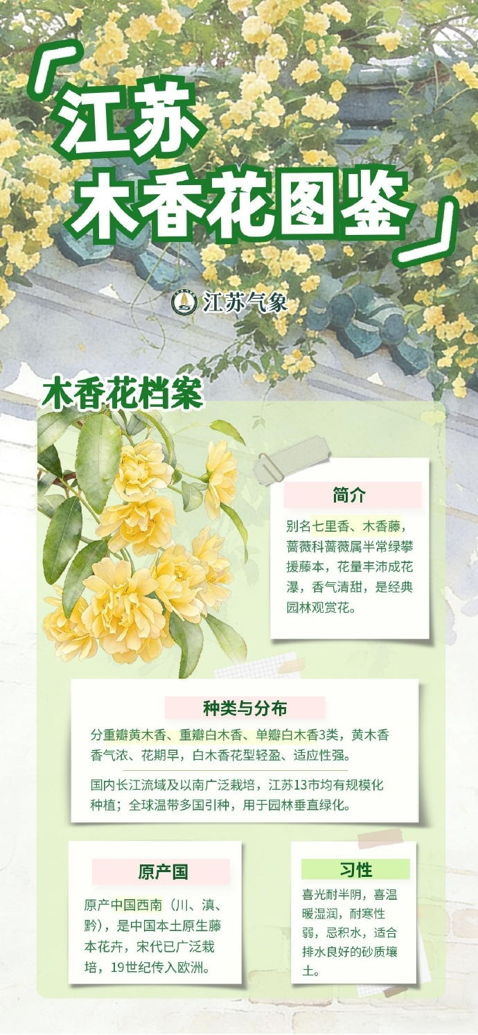 据悉,从4月中旬开始,江苏的木香花已陆续进入最佳观赏期,这份春日限定的美好将一直延续到5月初,市民游客有充足的时间前往打卡观赏。