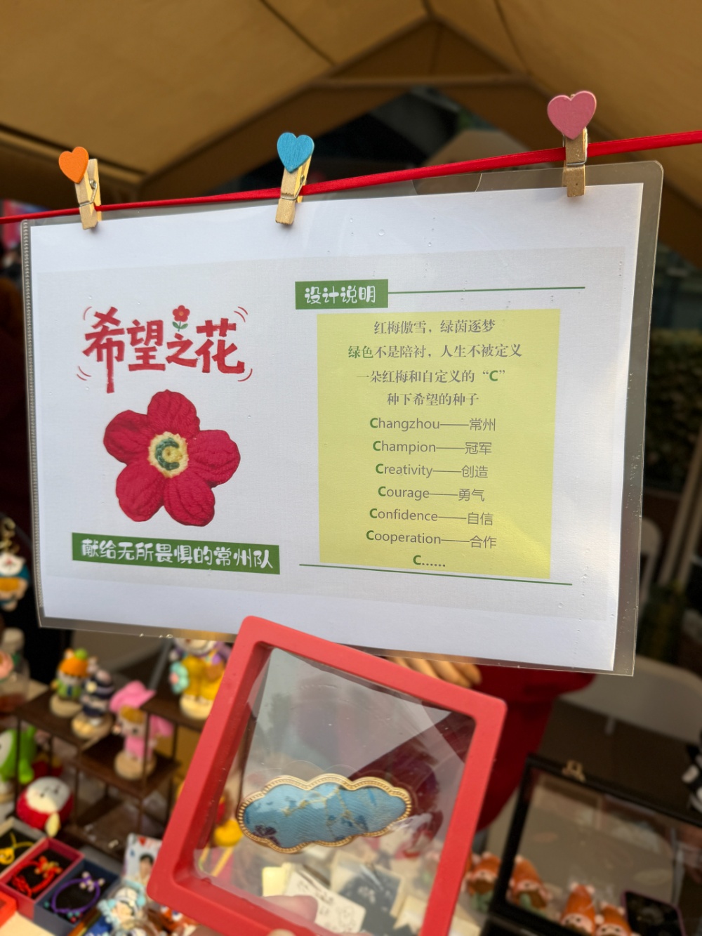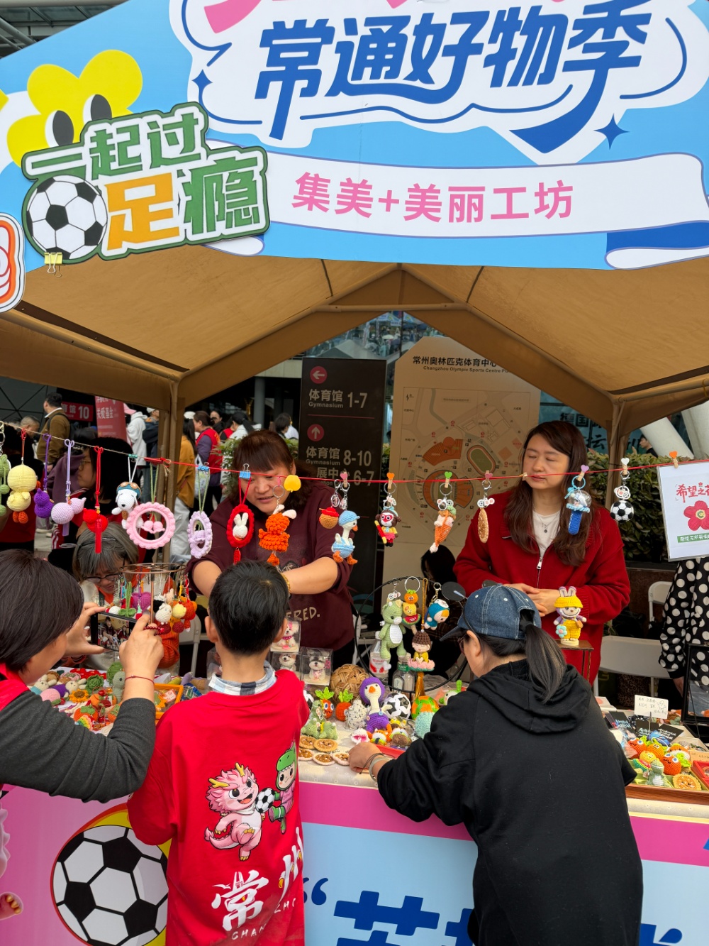 一旁的“美丽工坊”里,精巧的钩编足球、可爱的恐龙玩偶、富有龙城韵味的手工作品琳琅满目,这些出自残疾人之手的匠心好物,让过往球迷爱不释手。残疾人周琴发起了“集美+文创美丽工坊”项目,她和几位同样身残志坚,但擅长非遗香包、钩编、藤编、剪纸刻纸、布艺刺绣、虎头鞋等非遗手作人一起,以一技之长,引领文化助残新风尚。