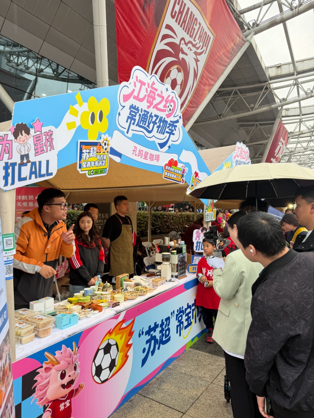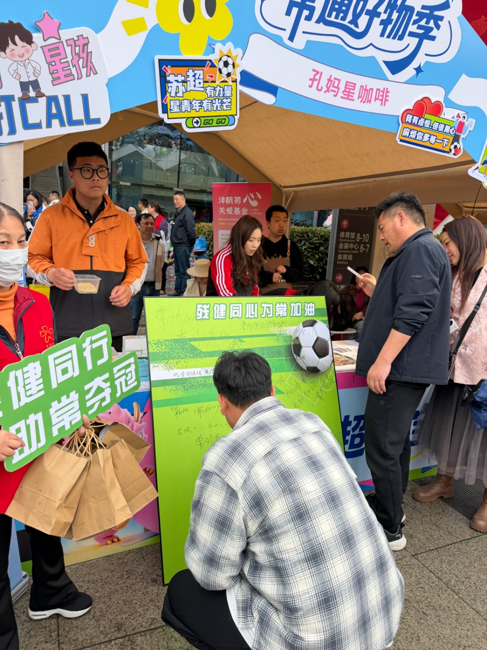 交汇点讯 4月11日晚,常州苏超赛场内激情澎湃,赛场外的“苏超市集”同样热闹非凡。与以往不同的是,这里多了一抹温暖而亮眼的公益色彩。