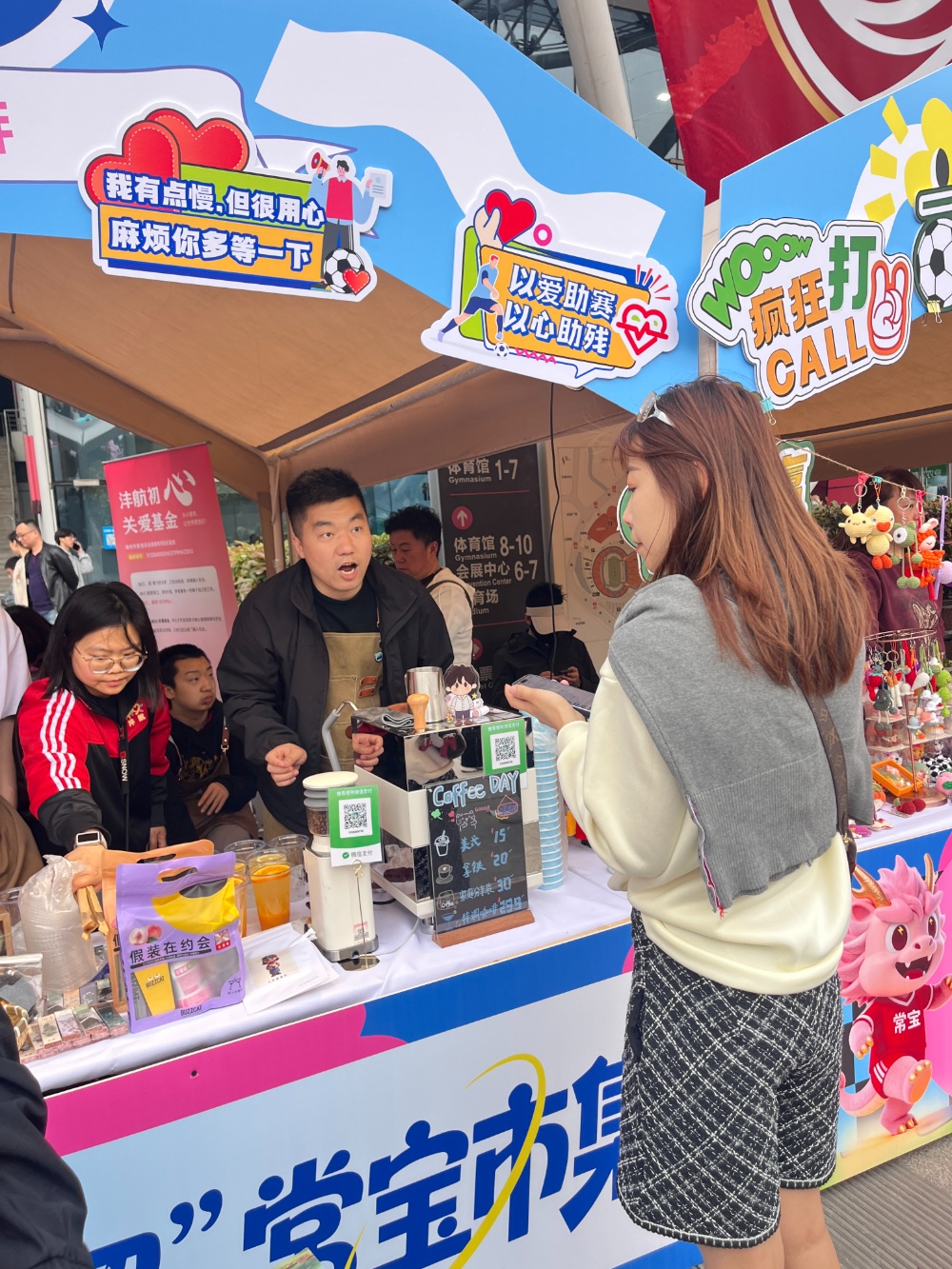 集市上人们看到,大龄自闭症青年专注地萃取咖啡、熟练打包,每一个标准化流程,都让社会大众近距离看见他们的努力与潜能。苏超联赛的暖心助力,为体育赛事助残模式注入全新活力。赛事方江苏足球超级联赛主动承担社会责任,让自闭症青年在真实场景中打磨技能、建立自信。在苏超赛场的“助残服务岗”上,多位大龄自闭症青年实现从家庭走向社会的关键一步。