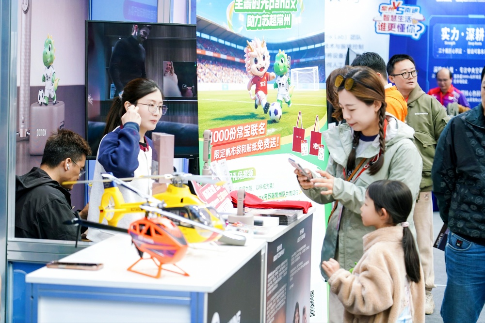 智能出行的赛道上更是“硬核交锋”:常州爱尔威的智能行李箱可坐人骑行,时速约8—13km/h,登机载人两不误;理想智造的AI眼镜轻巧灵动,吟飞科技的智能数码钢琴一个人就是一支乐队;而南通喜腾的苏超联名折叠包、罗化芯的“闺蜜机”智慧屏、铁人体育的折叠健身车,同样引来阵阵惊叹。特·宝藏赛道里,比的是匠心,常州乱针绣与南通蓝印围巾同台争艳,梳篦、黄酒、文创产品一字排开,每一件都承载着地域文化与传承坚守。