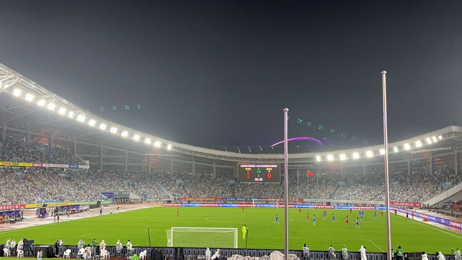 交汇点讯 4月11日晚,万众瞩目的2026江苏省城市足球联赛揭幕战在常州奥体中心打响,常州队主场迎战南通队。上半场双方经过45分钟的激烈拼抢,常州队以一记点球破门得分,以1比0暂时领先上届亚军南通队。