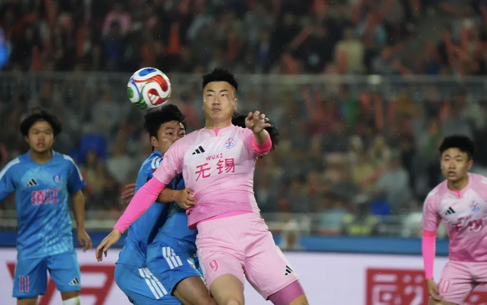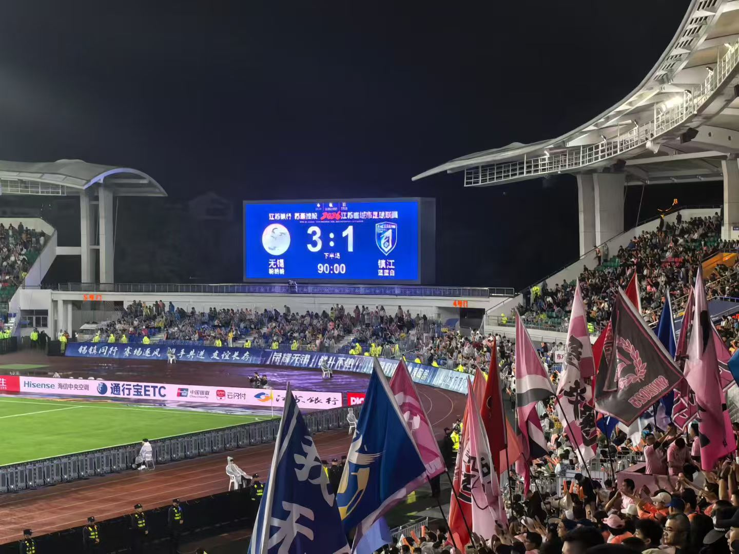 交汇点讯 4月11日晚,2026江苏省城市足球联赛(“苏超”)第一轮无锡队主场对阵镇江队的比赛在宜兴体育中心打响,结果无锡队顶住压力,以3比1获胜,为今年联赛开了一个好头。