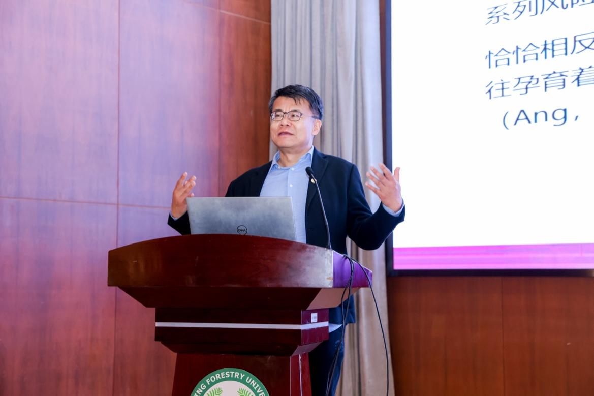 勇强在致辞中首先代表学校对中国林学会的信任与支持表示衷心感谢,并对全体与会嘉宾表示热烈欢迎。他指出,申请设立中国林学会生态文明传播分会,是学校积极服务国家生态文明建设、自觉践行农林高校使命担当的重要举措。学校依托长期积累的学科优势与研究基础,经过充分论证和积极筹备,成功推动分会落户,致力于打造一个集思广益、协同创新的高能级平台。勇强表示,学校将持续为分会建设提供有力支持,推动其在智库研究、学术交流、人才培养与科学普及等方面系统开展各项工作,努力将其建设成为生态文明传播领域的高水平阵地。他强调,生态文明传播是一项需要多方协同的系统工程,必须凝聚学界、业界与社会各界的力量。他希望以分会为纽带,进一步加强跨界融合,深化理论探索与传播实践,共同为推动绿色发展、建设人与自然和谐共生的现代化作出更大贡献。