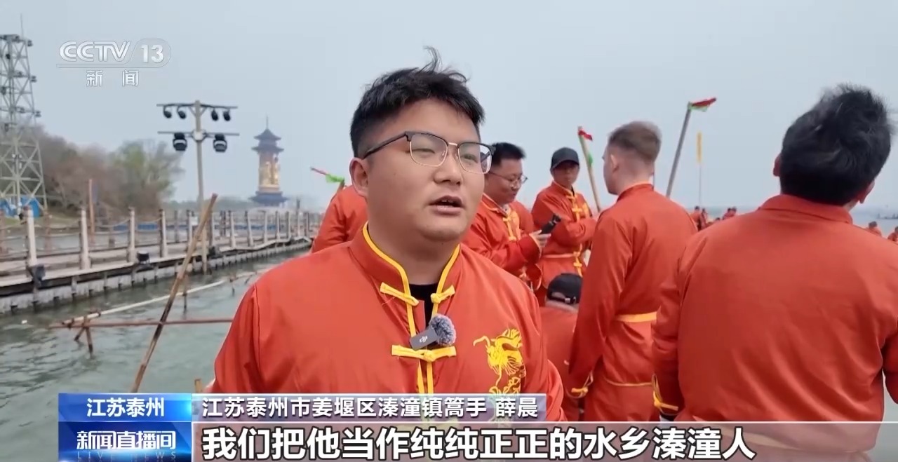 江苏省泰州市姜堰区文体广电和旅游局副局长 陆璐:以前船是水乡的交通工具,人人都会撑船,而最近二十多年会撑船的年轻人不多了。我们在节假日举办免费培训,春节后组织篙船大赛,通过预热赛事,让年轻人有练手机会,撑船技艺越来越好,信心也越来越足,所以溱潼会船时大家都积极报名参加,一展身手。