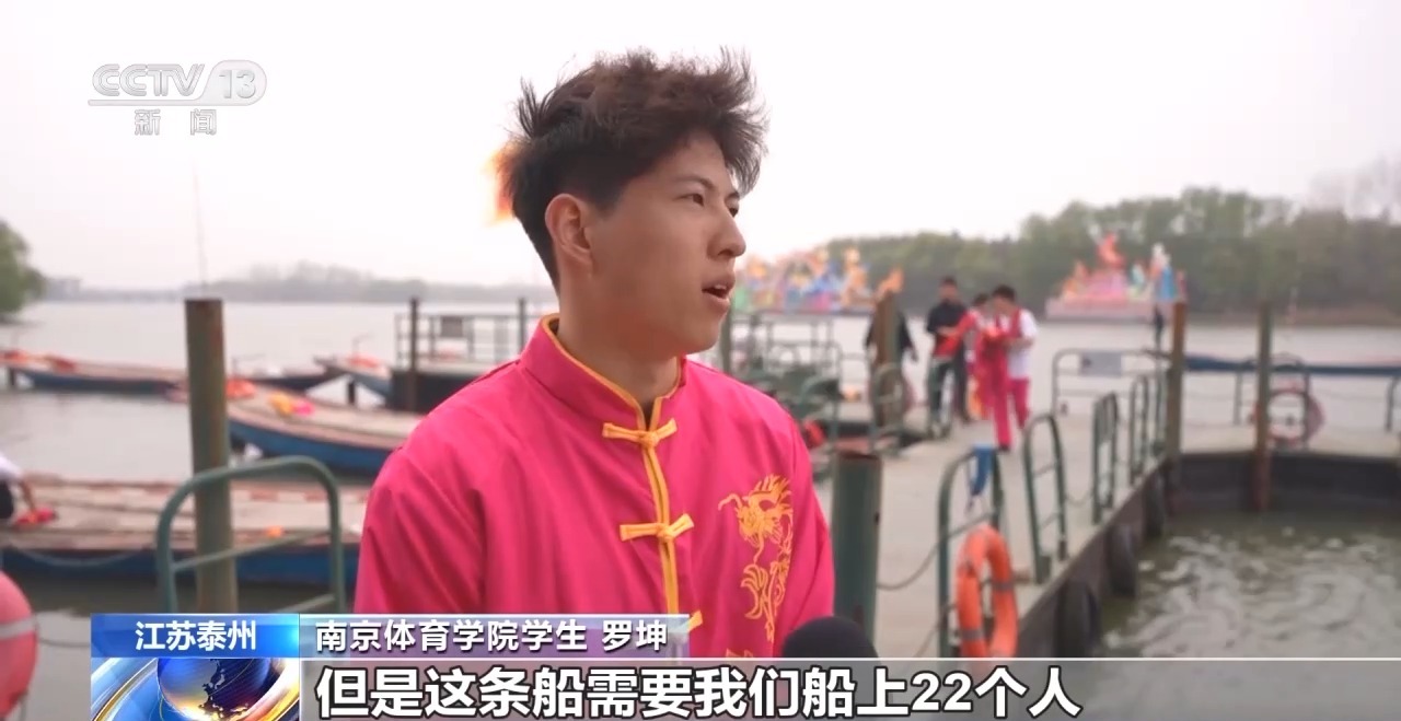 南京体育学院学生 罗坤:虽然说这是一条小小的船,但是需要22个人跟着锣手的节奏,每个人把劲往一处使。