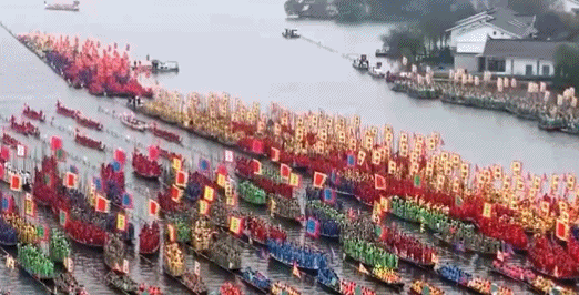 每年春天,国家级非遗——溱潼会船在江苏泰州姜堰区举行。500多只各色船只浩浩荡荡,比速度、比技巧、比气势,水上贡船、花船表演和岸边民俗展示交相辉映。当地人说:会船越热闹,日子越红火。这项传承了八百年的水乡盛事,今年有了新变化:洋小伙来了,各地大学生来了,数万游客也来了。