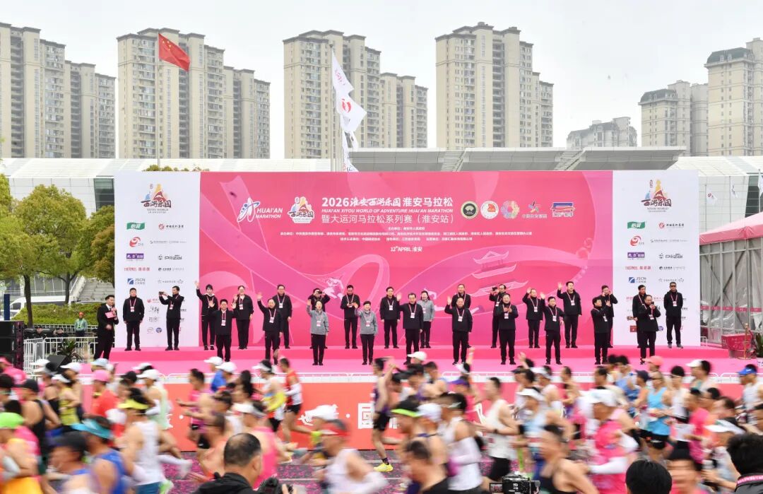 交汇点讯 4月12日上午7:30,2026淮安西游乐园淮安马拉松暨大运河马拉松系列赛(淮安站)在淮安市钵池山公园旁鸣枪起跑。作为世界田联标牌赛事、中国田协A1类赛事,本届赛事吸引来自31个国家和地区的117871名选手踊跃报名,最终参赛人数总规模达1.5万人,其中马拉松参赛选手8000人,半程马拉松7000人。
