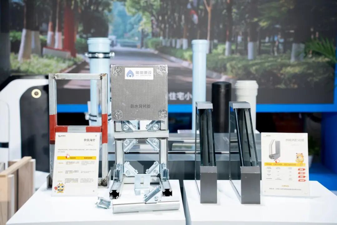 奥体建设展台上,四玻两腔玻璃、新风消声器、隔音水管等工艺样品吸引围观。丹荔云府项目采用四层玻璃+双空腔+夹胶层,隔音保温性能显著优于常规三玻两腔。工作人员说:“这是江苏省首个将该类玻璃用于住宅的项目。”