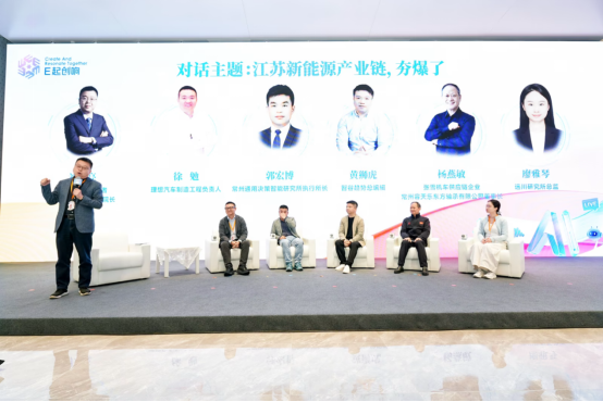 沙龙活动现场,理想汽车制造工程负责人徐勉、通用决策智能研究所执行所长郭宏博、智谷趋势总编辑黄狮虎、张雪机车供应链企业常州容天乐东方轴承有限公司董事长杨燕敏、远川研究所总监廖雅琴等来自整车制造、科研机构、产业研究及核心零部件企业的嘉宾,围绕“江苏新能源产业链,夯爆了”主题展开深度对话。璞跃中国首席执行官、璞跃常州OPC国际社区创始人徐洁平;“苏超”小微赞助商代表、东哈烧烤店主理人张敬宇;南京硅基智能创始人、董事长、常州硅基智能OPC社区创始人司马华鹏;财经无忌创始人陶魏斌;正解局主编李峰等嘉宾,聚焦“OPC拍了拍小店主理人”主题展开讨论。