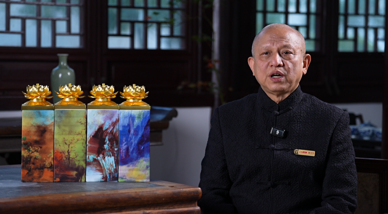 谈及此次与五粮液的跨界携手,张景辉的眼中满是对历史的敬畏与对文化的热忱。1915年,巴拿马万国博览会上,五粮液捧回白酒金奖,景德镇陶瓷大师王大凡的作品斩获唯一陶瓷金质奖章,两大国粹首次同台为国争光,在中华民族文化史上写下浓墨重彩的一笔。时隔110周年,这份跨越世纪的荣耀成为联结彼此的精神纽带,促成了这场陶瓷艺术与酒文化的深度对话。