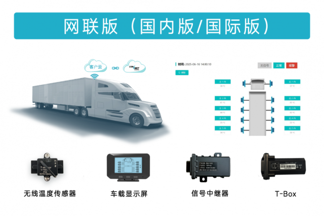 支持温度数据、车辆定位、行驶轨迹实时上传云端,车队管理员可远程查看所有车辆的轮端状态,报警信息同步在后台显示,实现车队安全数字化管控。该版本分为国内、国际版,其中国际版本专为跨境运输打造,支持跨境使用,保护数据隐私;