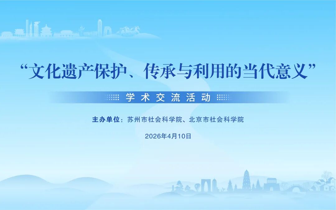 为深入挖掘文化遗产保护、传承与利用的当代价值,搭建跨区域文化交流平台,推动南北历史文化名城协同联动、文脉共守,4月10日,苏州市社会科学院与北京市社科院联合举办“文化遗产保护、传承与利用的当代意义”学术交流活动。两地社科研究专家齐聚一堂,共话文化遗产传承之道、共探活化利用之策。