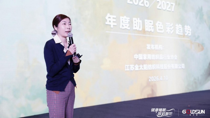 与此同时,金太阳与中国家用纺织品行业协会共同发布《2026/2027年度助眠色彩报告》。中国流行色协会副会长招霞对报告进行深度解读,她从色彩心理学与睡眠科学的交叉视角,阐释了三大助眠色主题的应用逻辑,让与会者直观感受到“视觉”如何成为健康睡眠的新入口。目前,该报告成果已全面融入金太阳2026秋冬新品及未来产品研发中,实现了从理论到产品的闭环落地。