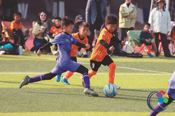 4月11日,2026“苏超”开幕当天,一场少儿足球赛正在栖霞区某高校球场上火热进行。来自南京和周边城市的几十名小球员在绿茵场上欢呼狂奔,球场四周围满了等候的家长。这是他们每周末的日常。