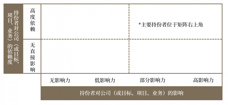 参考香港交易所给出的“持份者影响——依赖程度矩阵”工具,企业可以结合自身的业务,从利益相关方对公司的影响力和依赖程度两个维度出发,量化分析持份者的重要程度。