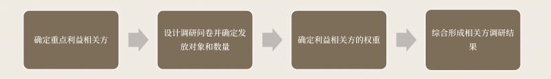 与利益相关者保持开放、透明的沟通有助于企业更好地识别实际和潜在的影响、风险和机遇,从而更精准地筛选出重要性议题。企业可以采用多种方式,例如问卷调查、访谈、焦点小组讨论等获取相关者的反馈。问卷调查是受众广、信息收集效率高的一种调研方式之一,其包含的步骤如下: