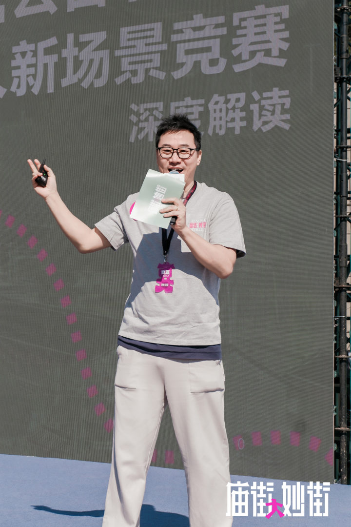 AIM国际设计竞赛组委会主席王旭从竞赛逻辑、机制创新与未来愿景等方面进行系统阐述。他提出,以古北妙街为载体,将“庙”和“街”这两个关键元素叠加,打造全国首个“街庙融合、非标商业潮流聚集地”,让年轻人“在一条街上完成一站式拜庙、逛街、社交与打卡”,把庙会文化转化为“永不落幕的庙会经济”。
