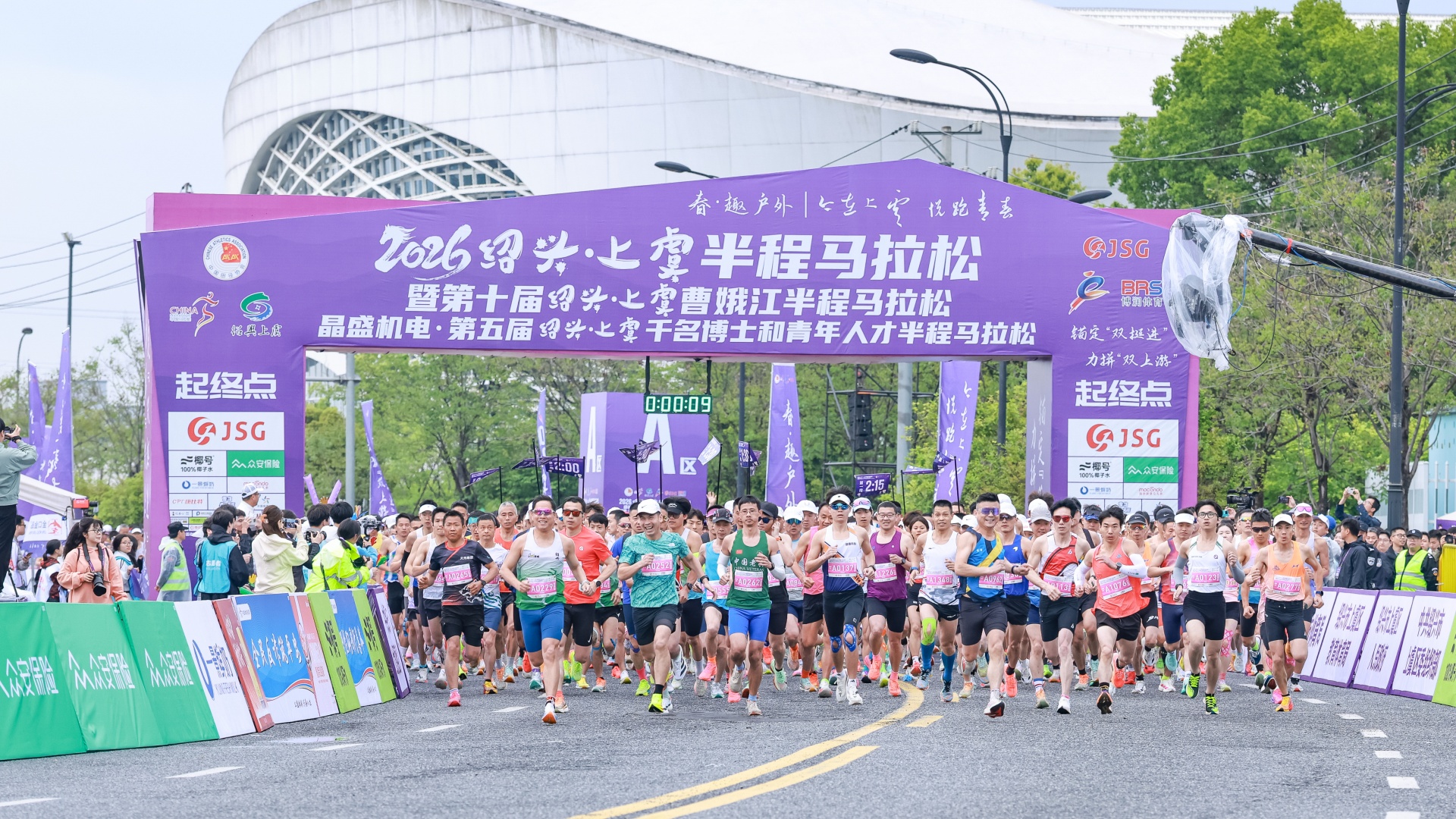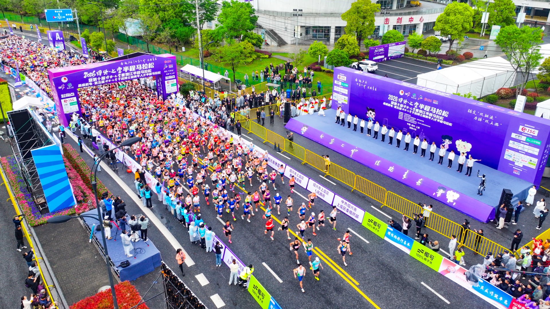 4月12日上午7时30分,随着发令枪响,2026绍兴・上虞半程马拉松暨第十届绍兴・上虞曹娥江半程马拉松、晶盛机电・第五届绍兴・上虞千名博士和青年人才半程马拉松在上虞体育中心激情起跑。15000名跑者齐聚曹娥江畔,共同奔赴一场以“今在上虞,悦跑青春”为主题的十周年体育盛典。