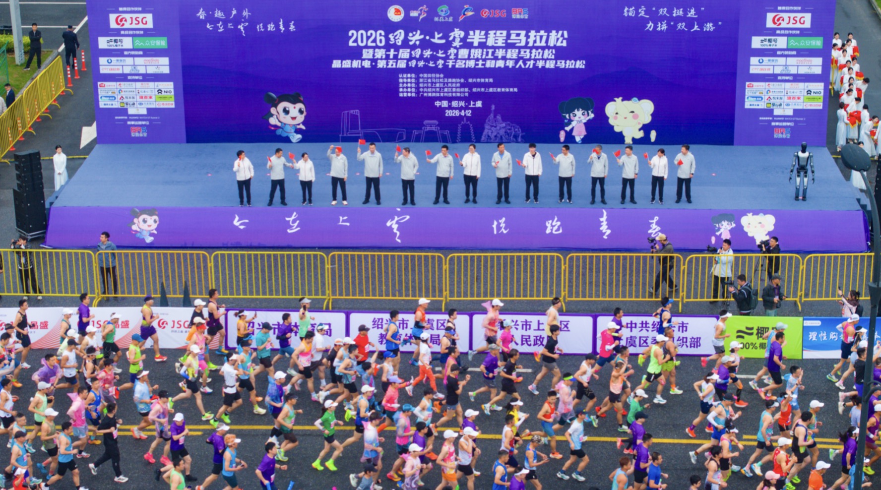 本届赛事迎来十周年里程碑,区领导钱林江、余丹、赵文中、金山中、李海裕等出席起跑仪式,特邀中国科学院院士、浙江大学物理学院教授、浙江大学量子信息交叉中心首席科学家朱诗尧,在外上虞知名人士、浙江省功勋教练员朱志根,虞籍浙江省第一位冰雪项目国家队教练王雪霞,上虞攀登珠峰第一人顾旭明,首届曹娥江半程马拉松策划执行团队代表严振威等嘉宾现场助阵,与跑者共襄盛举。