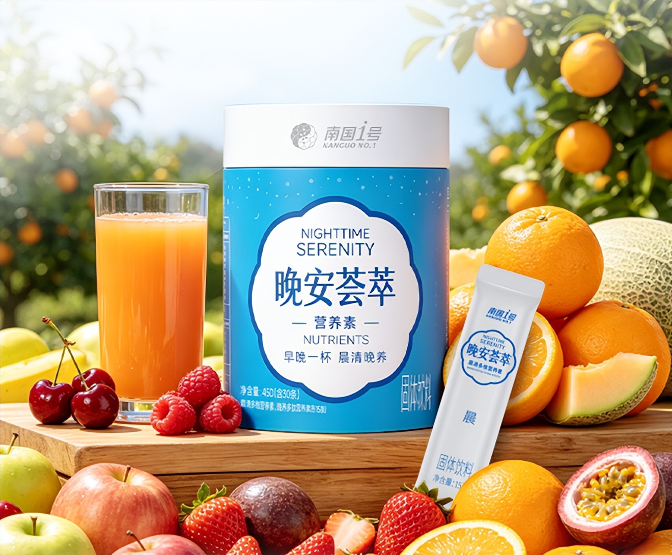 晚安荟萃营养素,面向成年及中老年群体,以“早晚一杯,晨清晚养”为理念,打造分时营养补充方案。