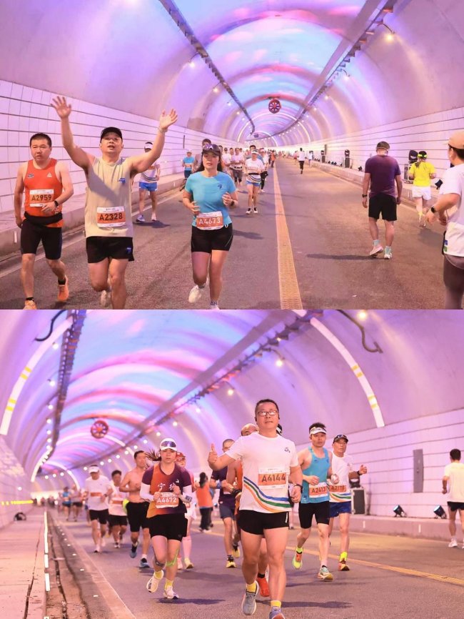 本次赛事以“追光逐影・踏浪而行”为主题,深度挖掘霞浦山海特色与人文底蕴,将体育赛事与文旅体验有机融合,打造了一条独具特色的“山海赛道”。赛道串联金沙路、疏港公路、古桶村、烟墩山隧道等核心景观,将滨海风光、滩涂光影与渔耕文化、海岸特色深度融入赛事全过程。值得一提的是,赛事特别在烟墩山隧道布置了主题灯光秀,通过灯光的巧妙配合,营造出沉浸式光影体验,让跑者在穿越隧道时,仿佛置身于光影交织的梦幻空间,进一步丰富了赛事体验感;赛道沿途设置本地风俗啦啦队表演,队员们身着特色服饰,用极具地方韵味的歌舞、呐喊为跑者减少疲惫,将霞浦的民俗风情传递给每一位参赛者,让奔跑之路更具温度与特色。