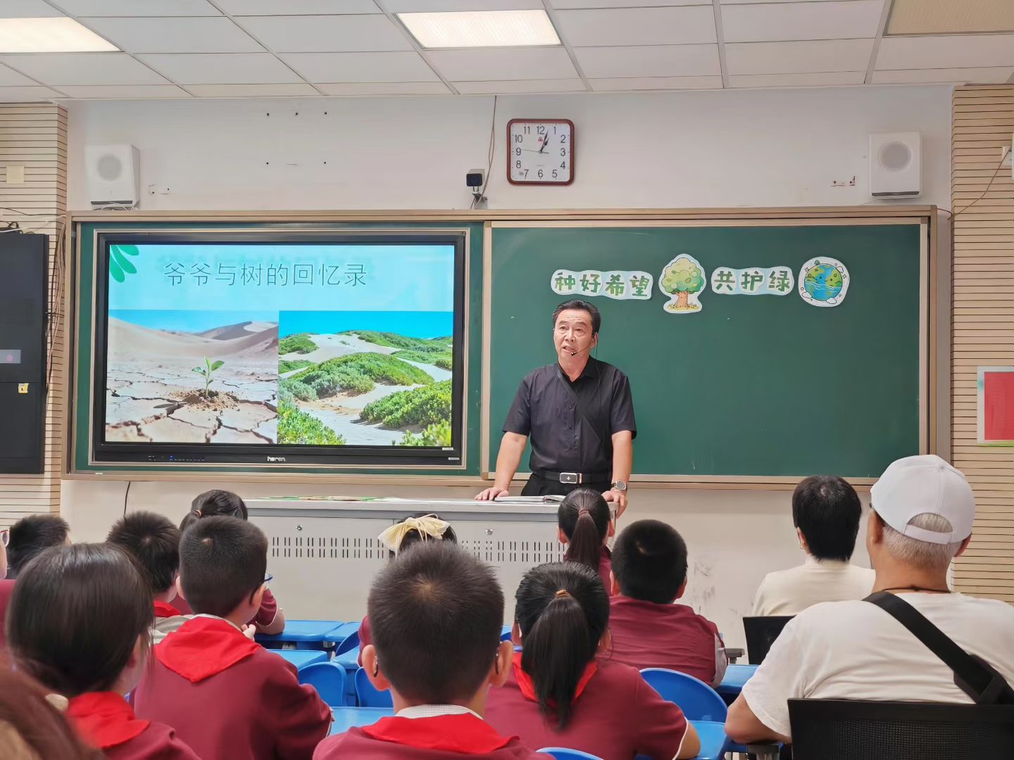 “奶奶,您以前步行上班要多长时间?”“爷爷,家里什么时候有自行车的?”……日前,在四(3)班的教室内,一堂以“绿色出行,为地球减负”为主题的“爷爷奶奶课堂”如期开展。班主任老师周洋拿出一张校门口拥堵的照片,瞬间点燃了孩子们的分享欲,大家叽叽喳喳讲述着自己的上学出行方式。随后,爷爷奶奶走上讲台,分享自己从步行到自行车、公交车、再到小汽车的出行故事。活动还设计了课后实践活动,鼓励祖孙携手,周末完成一次绿色出行、识别路边环保标识、填写“绿色出行打卡表”等任务,让绿色环保的种子在代际交融中悄悄生根。