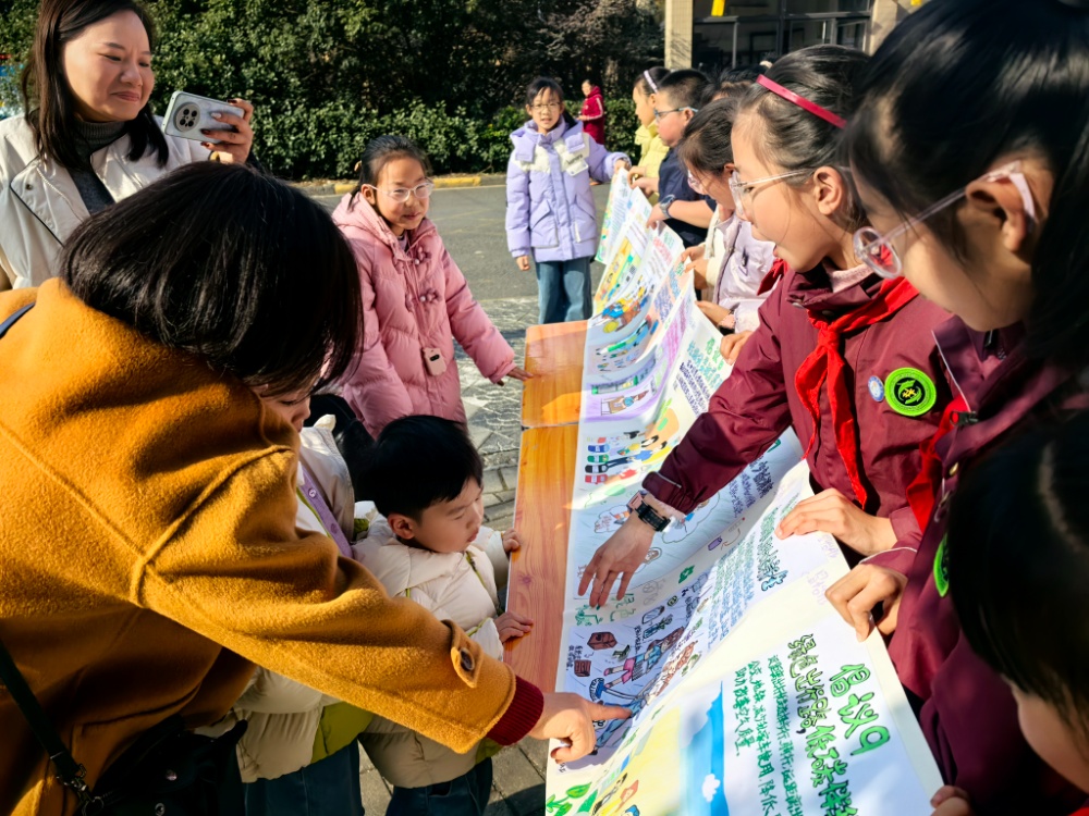 “辖区派出所的工作人员特别高兴,说以前推行这类法规,要么靠强硬管控,要么靠群众监督,不仅效果不佳,还易引发矛盾,而孩子们的宣讲,实现了‘零矛盾’推进,居民接受度特别高。”顾惠芬笑着说,也正是这次经历让学校发现,居民对环保问题有着强烈的关注,从文明养犬、垃圾分类,到绿树保护、节水节电,每一个环保话题都能引发共鸣。于是,学校顺势将社区治理与环保实践紧密结合,让生态研学更具现实价值,也让孩子们在服务社区、传递理念的过程中,真正读懂了环保的意义。
