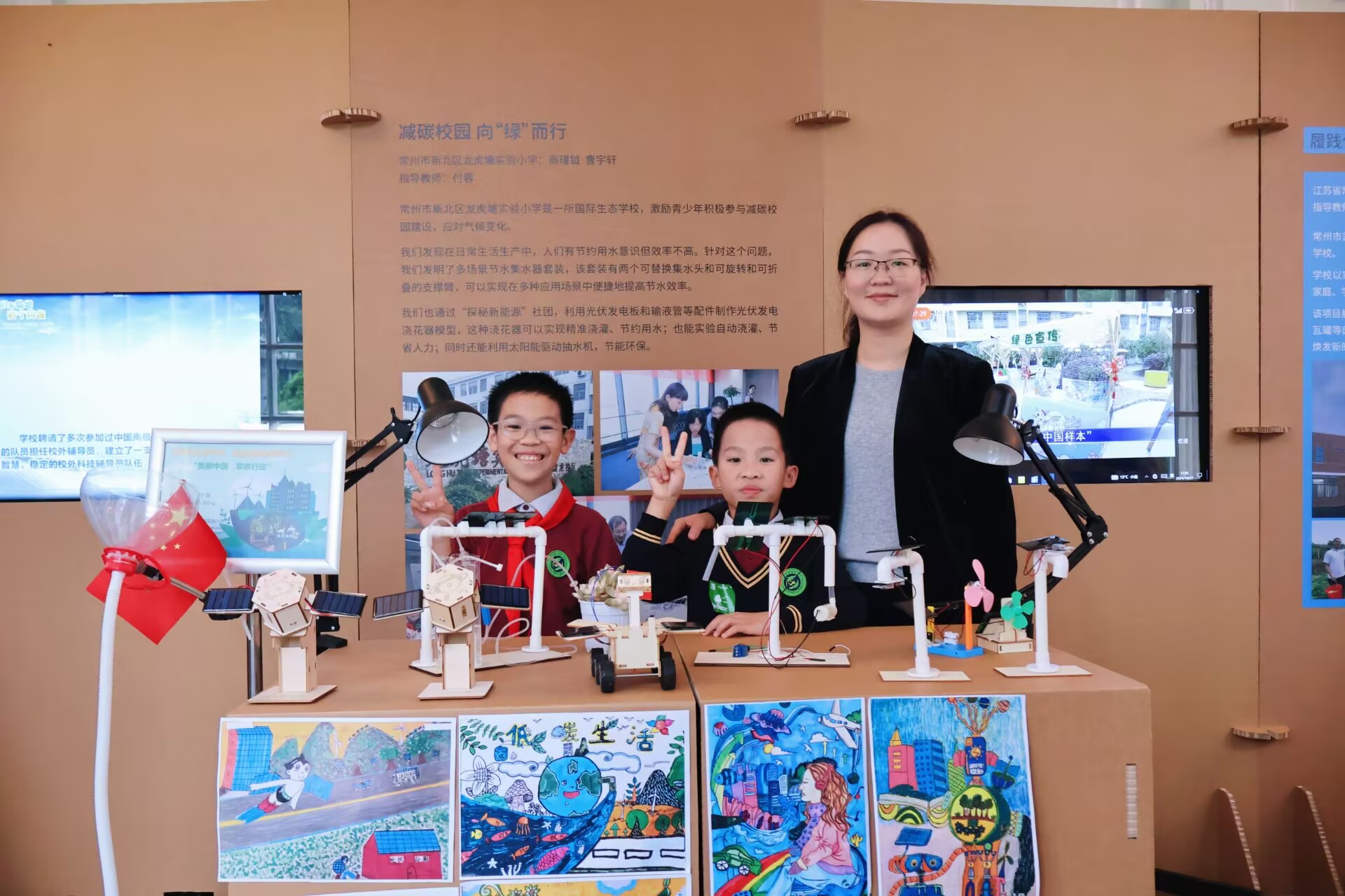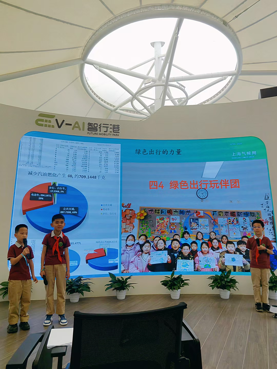 联盟的领航赋能,让龙虎塘实验小学的环保实践有了更广阔的平台,也让孩子们有了更多展示自我的机会。去年11月,上海“童筑气候韧性未来——第五届气候变化教育研讨会”上,龙小的孩子们带着自己的“气候记忆”登台分享,展示用奶茶杯改造的“环保清凉扇”,讲述暑期“地球降温微行动”的点滴;在应邀参加的“上海气候周”系列活动上,3名学生自信登台,向与会嘉宾讲述节水器的发明历程、新能源科幻画的创作思路、绿色出行的实践成果,从容大气的台风、清晰流畅的表达,赢得全场一致夸赞。
