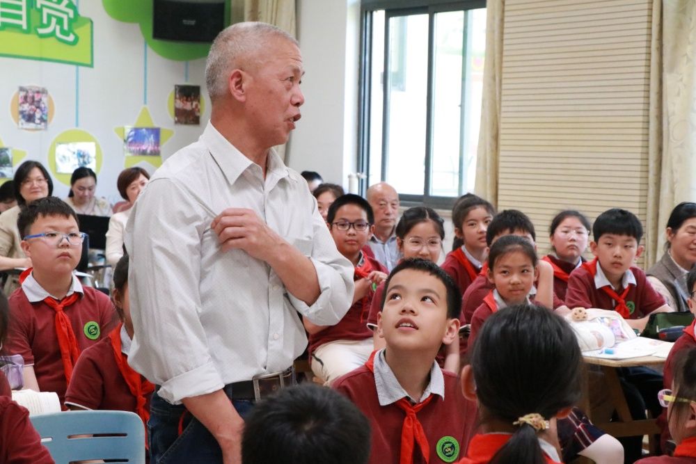 依托家委会的协同支持与河海老年学校的资源联动,“隔代互学”项目也在不断发展壮大、提质增效。不久前,河海老年学校的7位学员走进龙虎塘小学五(4)班课堂。其中,刘金法老人结合自身经历,从生态教育的角度,讲述了常州湟里从昔日的普通乡村,到如今绿色宜居家园的发展故事,那些亲身经历的环境变迁、默默坚守的环保行动,深深打动了在场的每一位孩子。“应对气候变化、改善地球环境,从来都不是一代人的事,这需要接力传承、共同努力,这也让我更加懂得要珍惜当下、爱护环境。”学生汪敬益的课后感悟,道出了孩子们的心声。
