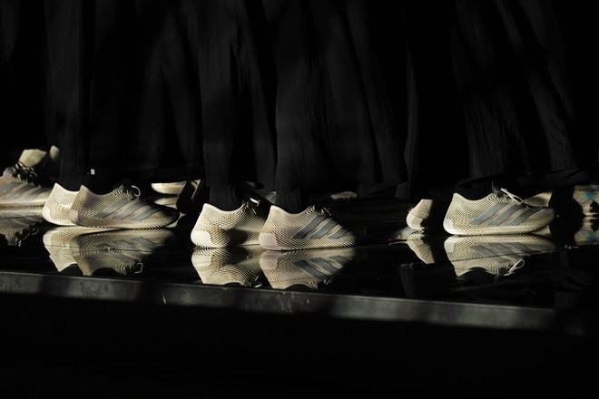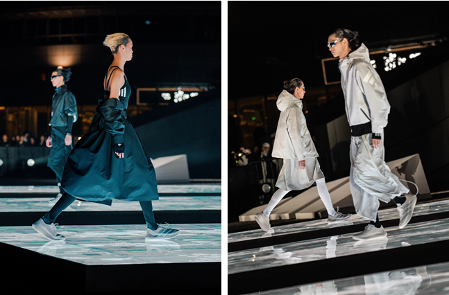 发布会整体叙事由专业运动表现延展至风格与美学表达。模特以序列形式展开,搭配CLIMACOOL风巢鞋款与阿迪达斯先锋运动系列服饰共同构成统一的未来运动风格造型。精英运动员们以未来感造型再次加入序列,从运动表现转入风格表达,进一步拓展CLIMACOOL在未来运动美学语境中的多维呈现。