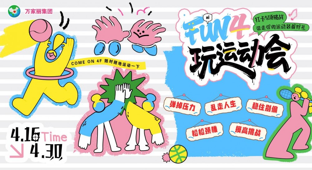 4月16日至4月30日,万家丽4F化身巨型运动乐园,以多元趣味挑战,邀你卸下疲惫、释放活力。“弹掉压力、乱走人生、稳住别偏、松松颈椎、摸高挑战”等丰富项目,兼顾趣味性与互动性,无论是独自解压还是结伴同乐,都能找到属于自己的运动乐趣。活动期间,只需打卡5项挑战,关注宇宙中心万家丽小红书官方号,在4F运动点位拍摄不少于3张照片,带话题#宇宙FUN4玩,发布小红书笔记并@宇宙中心万家丽,即可前往2F服务台领取运动装备好礼一份,数量有限,先到先得,将运动的快乐与实用好礼双双收入囊中。