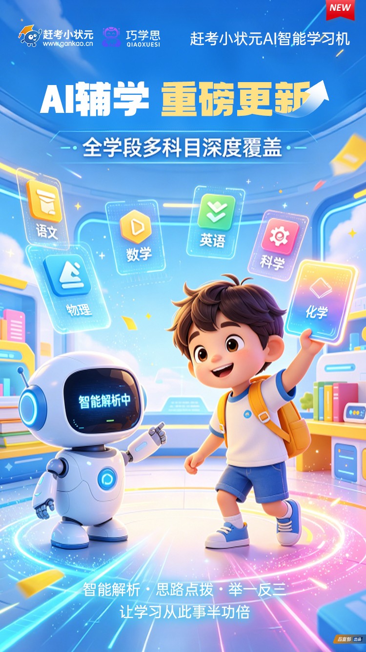 《“人工智能+教育”行动计划》在基础教育阶段提出“坚持科技教育与人文教育相结合,注重学生的启智、心灵的培养,引导学生科学认识、合理利用智能技术,提升学生智能素养”。这恰恰与赶考集团的核心学习理念深度契合——AI教育的终极目标,从来不是让AI替孩子学习,而是教会孩子“如何学习”。