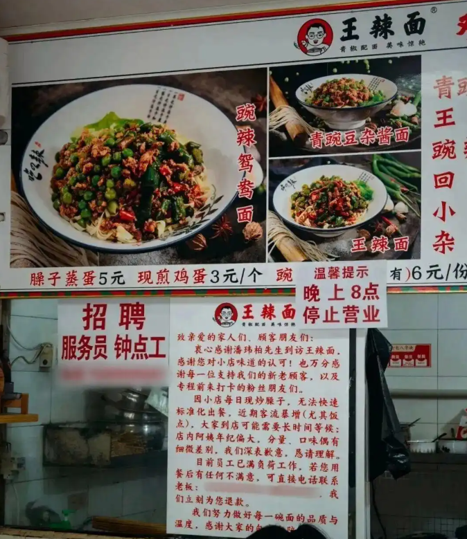 最近,成都一家面馆火了。起因是歌手潘玮柏在个人社交平台上晒出一段视频,他坐在街边小店里,一口气吃完了5碗面,边吃边感慨“晕碳了,但这就是人生”。就是这么一条随手拍的吃播,让这家名叫“王辣面”的小面馆一夜之间站上了流量的风口。粉丝们蜂拥而至,四五十平方米的小店门口排起长龙,取号上百,客流翻了三倍。