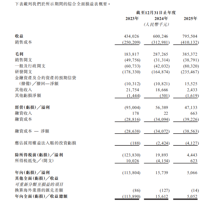招股书也暴露了硬币的另一面。2023年公司净亏损1.14亿元,2024年扭亏为盈,净利润1574万元,2025年净利润为506万元。连续两年实现盈利,在AI+机器人领域属于领先水平。其中主要原因之一在于微亿智造研发投入持续高企:2023年、2024年、2025年研发开支分别为1.78亿元、1.65亿元、2.35亿元,占同期收入的41.1%、27.5%、29.6%。其中算力成本增长尤为明显,从2024年的7520万元增至2025年的1.51亿元,投入增长近一倍。